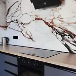 Apartament Luxury Belmondo jest wyposażony w pełnowymiarową kuchnię z urządzeniami do przygotowywania własnych potraw. W ciągu 5-minutowego spaceru można dojść do restauracji WOW Creperie i spróbować dań kuchni albańskiej. Od tego apartamentu do przystanku autobusowego Agip w bliskiej odległości.
